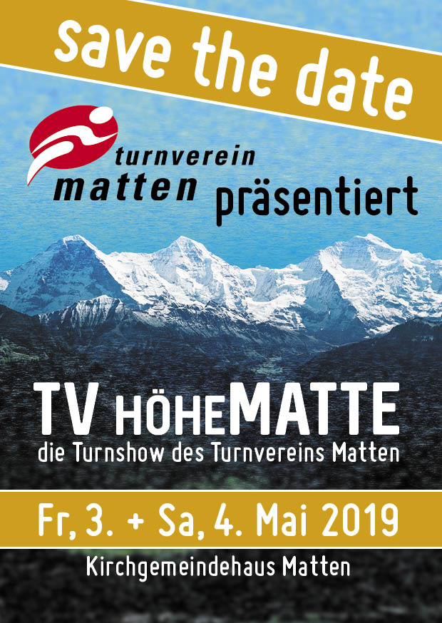 Nach 5-jähriger Pause führt der Turnverein Matten wieder eine Turnshow im Kirchgemeindehaus Matten durch. Weitere Infos sowie der Vorverkauf werden bald hier auf der Website aufgeschaltet.