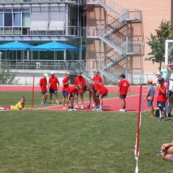 Nach dem gemeinsamen Einturnen wurde der Wettkampf eröffnet. In den Disziplinen Sprint, Weit, Ball oder Kugel, und dem abschliessenden 600m bzw. 1000m Lauf massen sich die Kinder im Alter von 7 bis 16 Jahren. Alle gaben ihr Bestes und kämpften gegen die brütende Hitze.