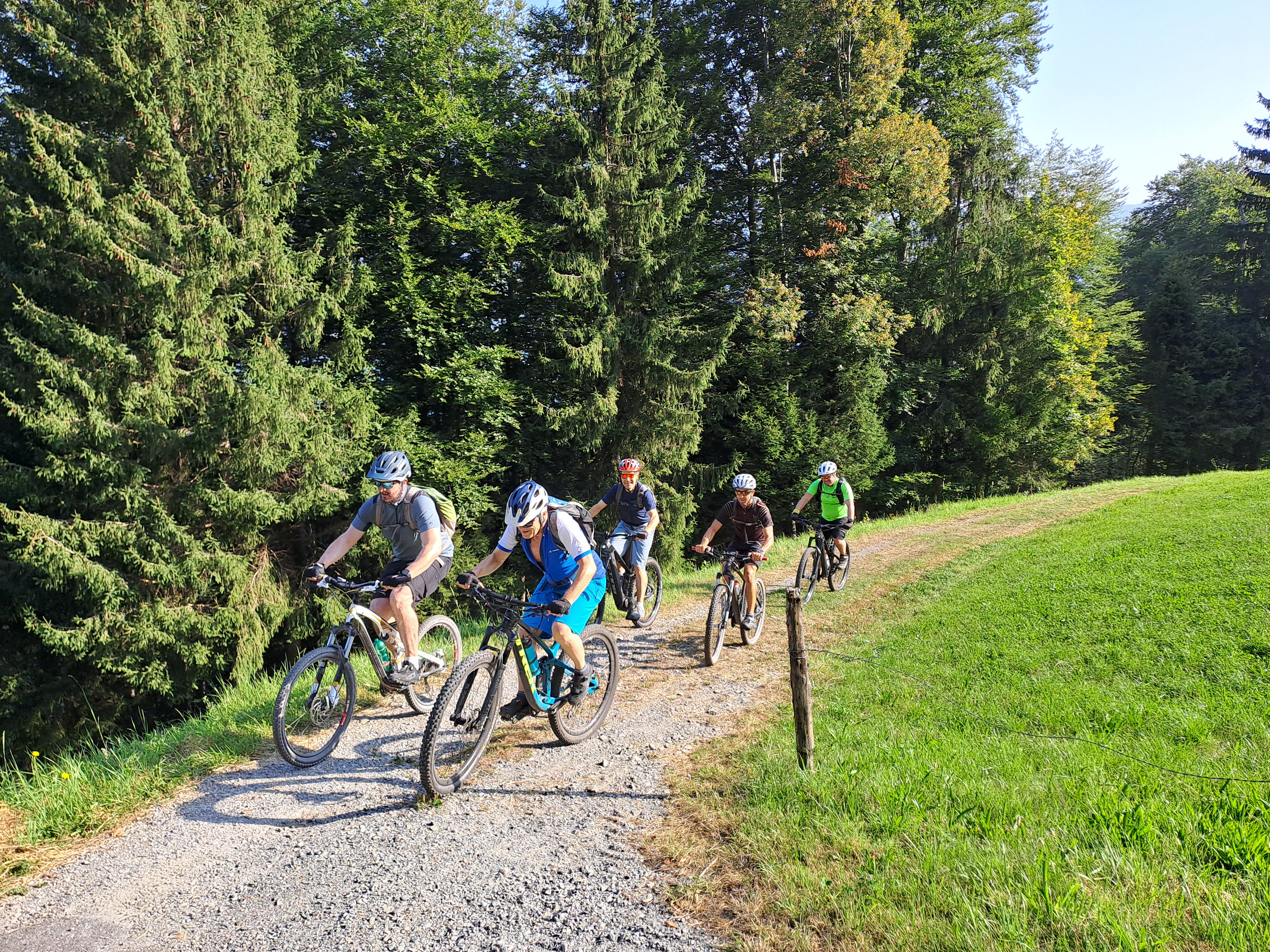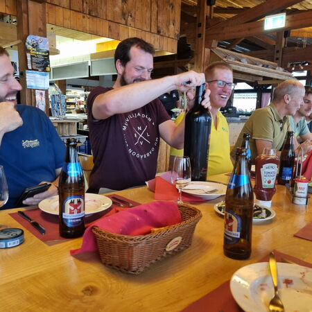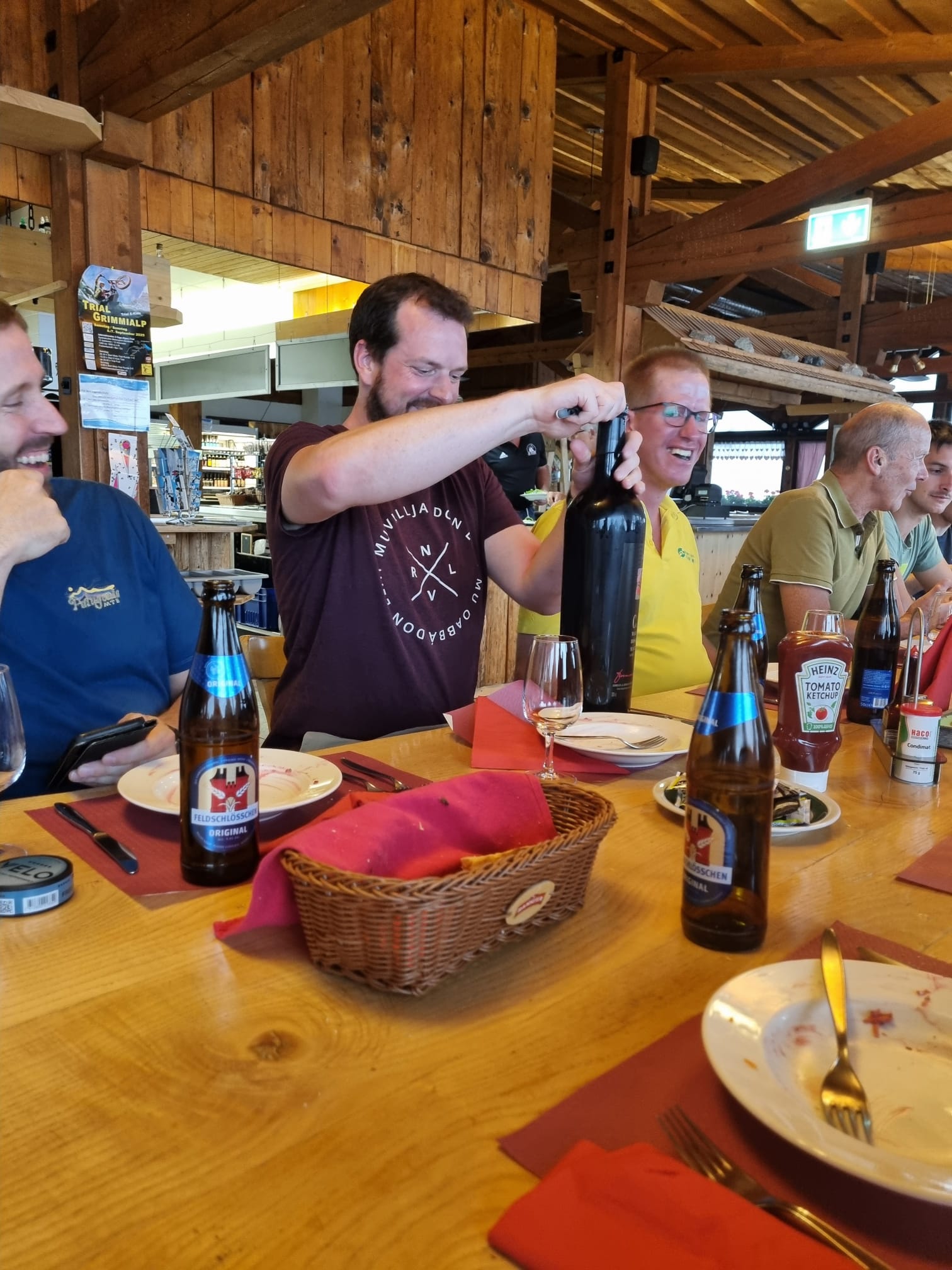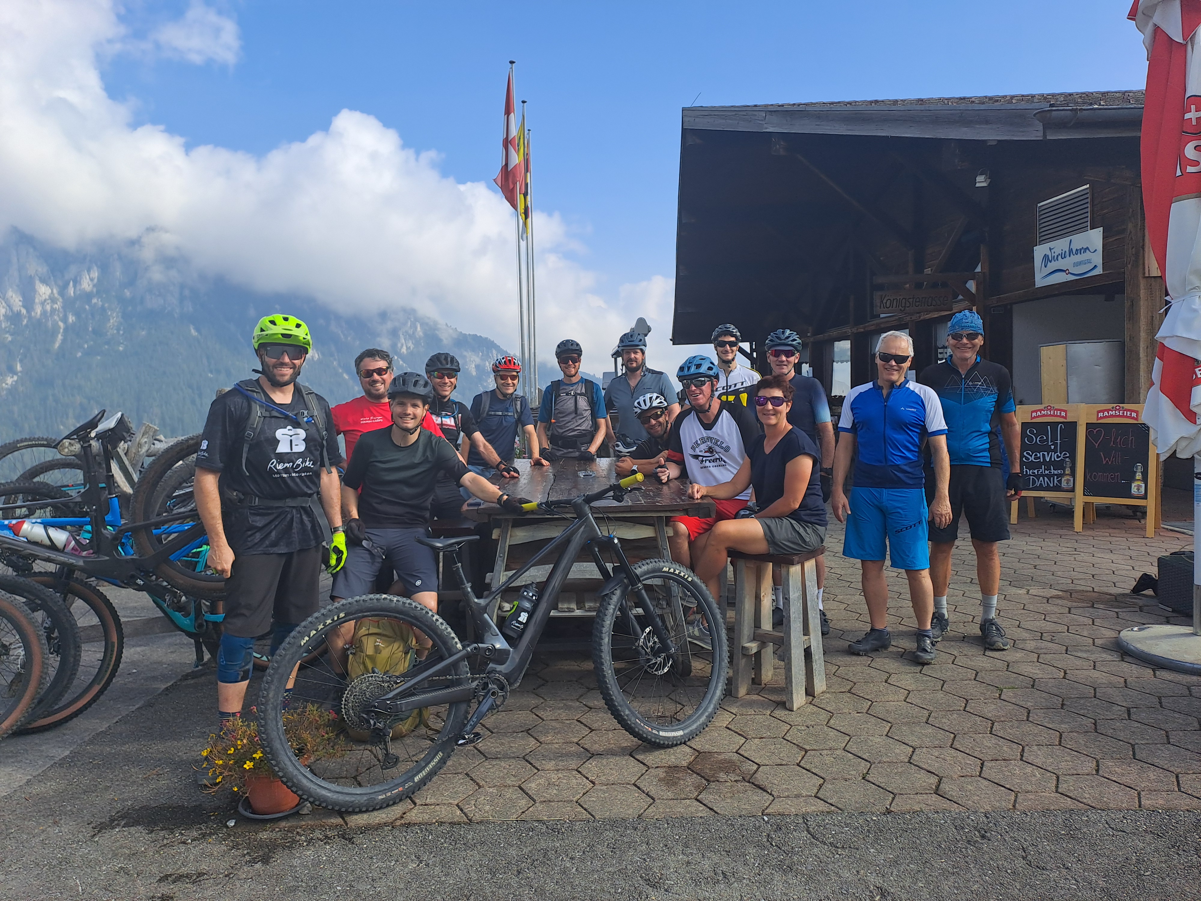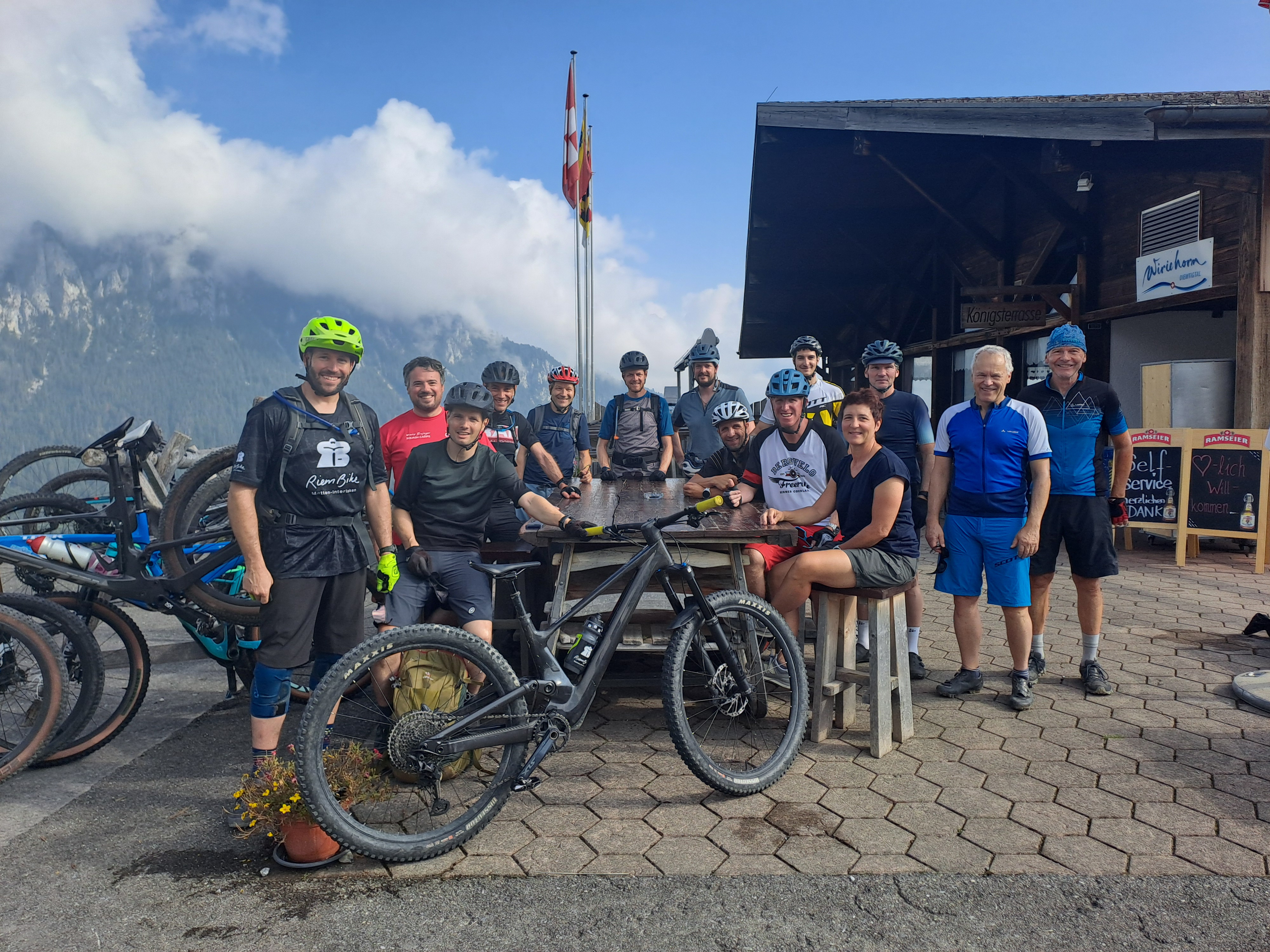 Bei sonnig warmem Wetter ging die Fahrt am Samstagmorgen los in Richtung Diemtigtal. Wie üblich, wenn es in diese Richtung geht, führte die Tour über Krattigen und Aeschi und dann weiter um den Niesen herum nach Wimmis. Bei der Mittagsverköstigung im Restaurant Schönbühl in Diemtigen wurden Cordon Bleus in verschiedensten Varianten und gleichzeitig teilweise auch benannt nach den Teilnehmenden genossen. Die anschliessende weiterfahrt durch das Dorf Diemtigen war wohl für die meisten eine Premiere – kann aber als Variante durchaus weiterempfohlen werden! Von dort aus ginge es dann zum Wiriehorn resp. dem Berghotel Wiriehorn auf der Nüegg. Oben angekommen, genossen einige noch ein Paar Fahrten auf den Trails während sich die anderen bereits einem kühlen Getränk zuwendeten. Das Nachtessen wurde kombiniert mit einer rekordverdächtig grossen Flasche Rotwein, beim Appenzeller entschied man sich dann aber doch für die kleinere Variante. Am Sonntag ging die Fahrt wieder retour, ein Teil der Gruppe rockte nochmals die Trails bevor der direkte Heimweg unter die Räder genommen wurde, während die anderen noch einige Höhenmeter hochtrampelten und durchs Simmental zurückfuhren. Schlussendlich endete die Tour wie üblich im Hirschen mit einer leckeren Glace!