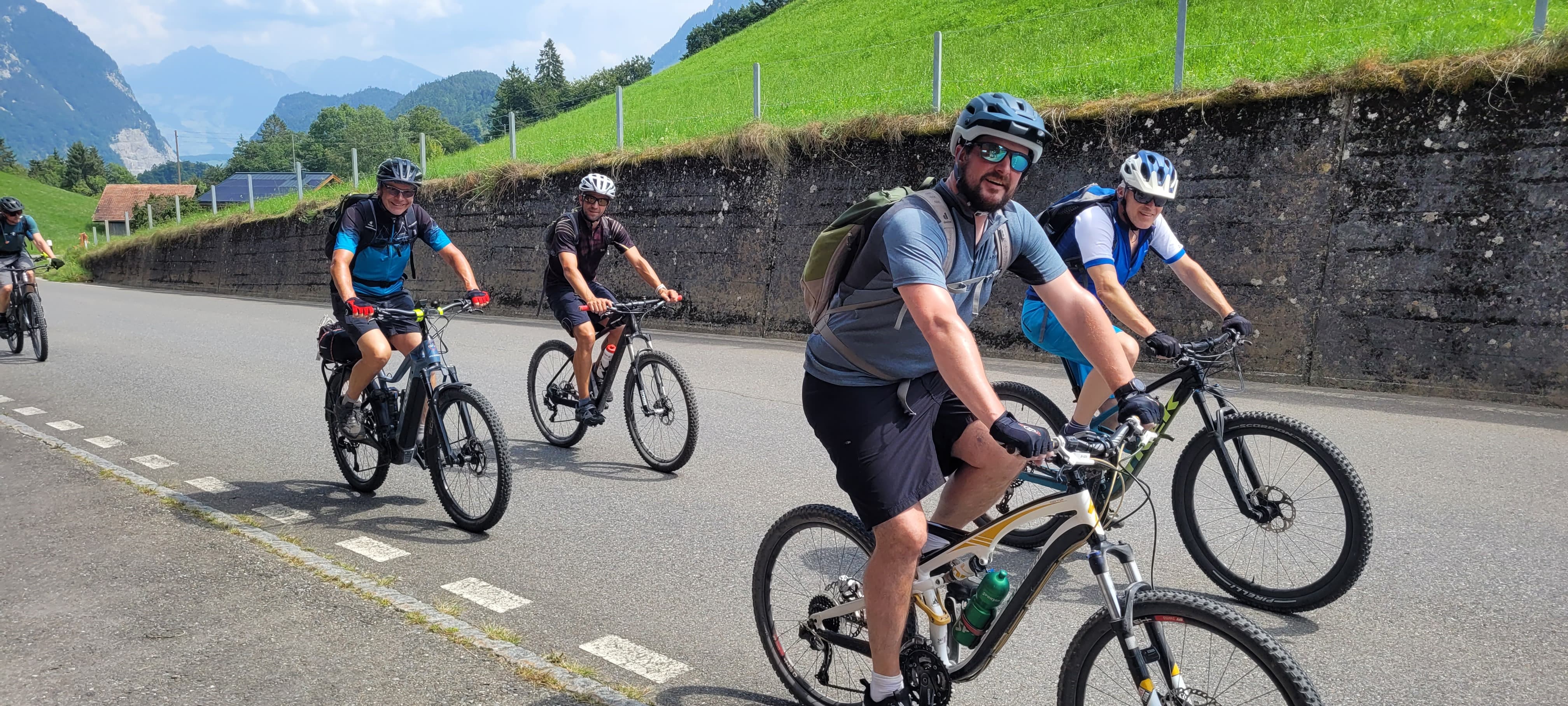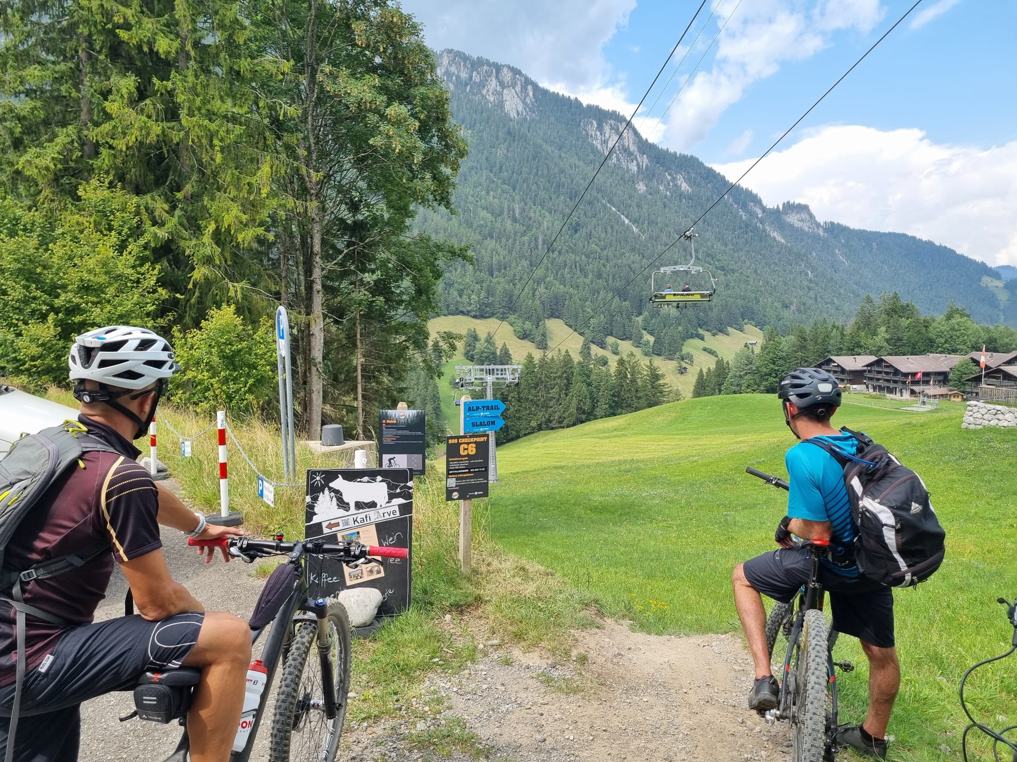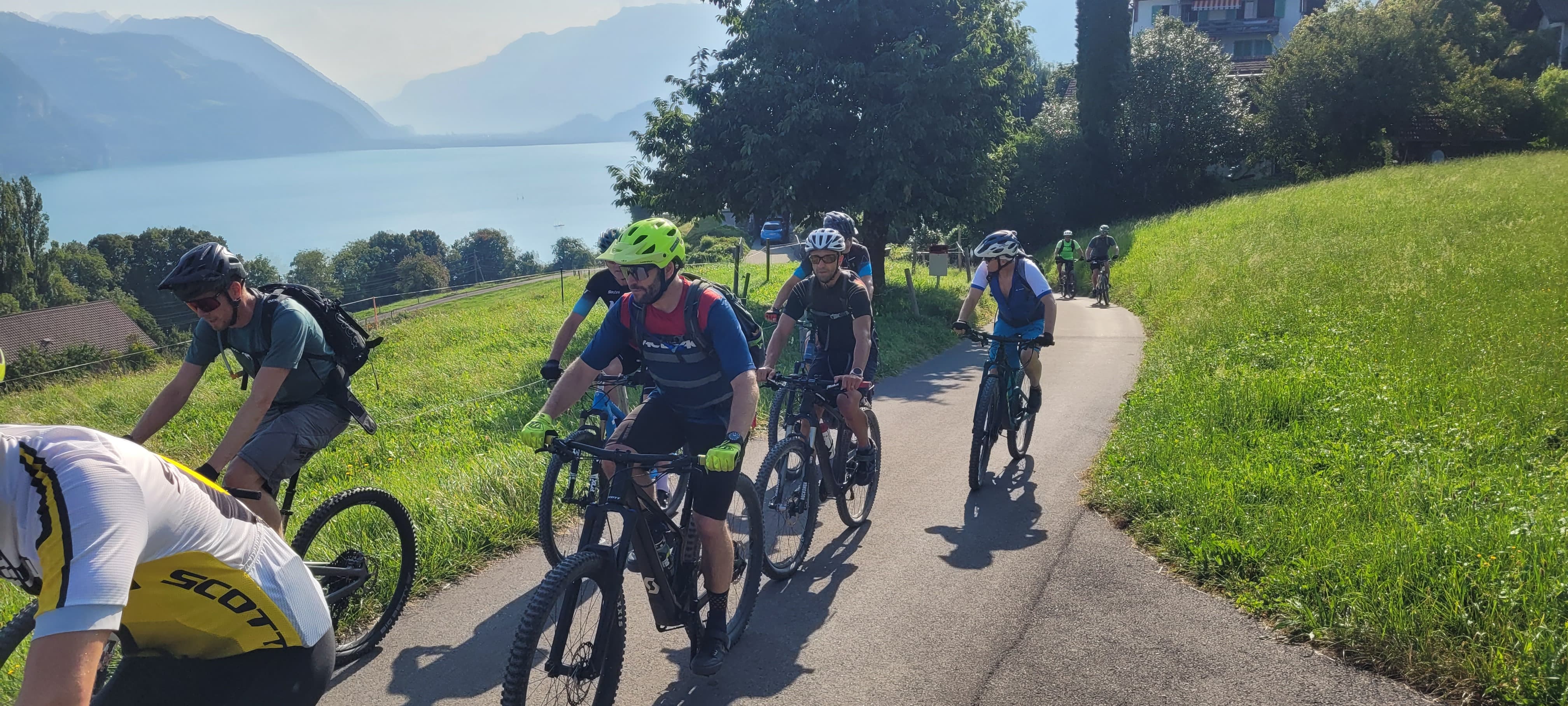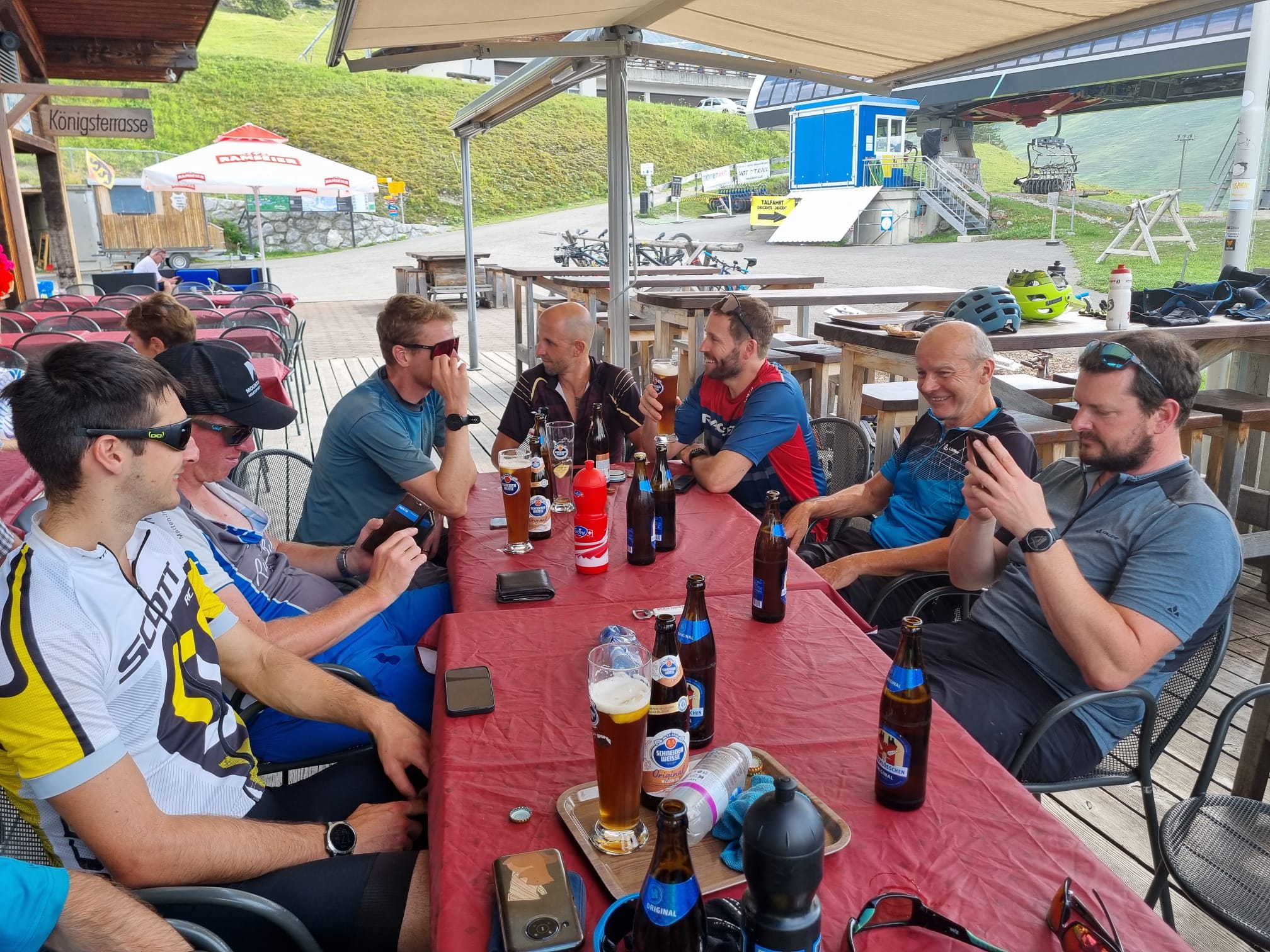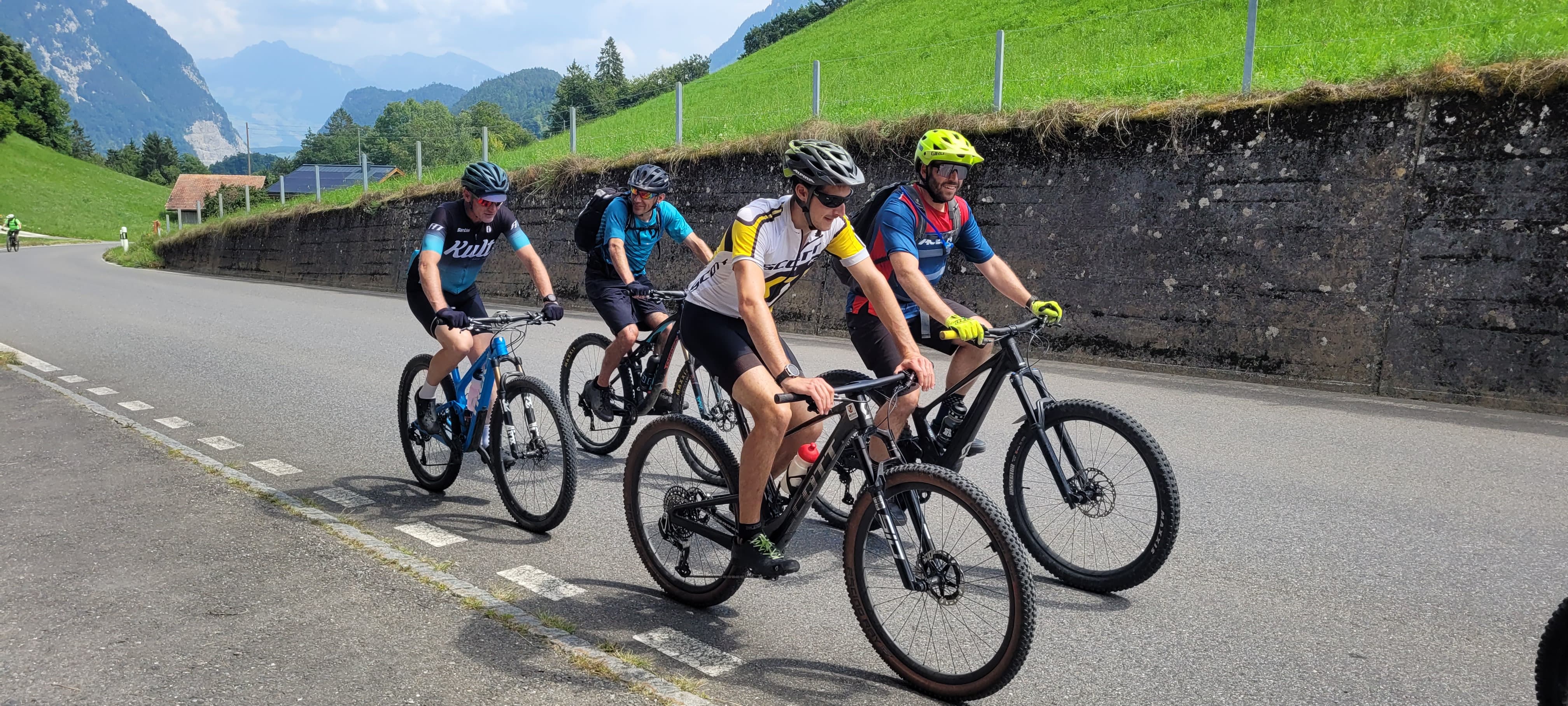 Bei sonnig warmem Wetter ging die Fahrt am Samstagmorgen los in Richtung Diemtigtal. Wie üblich, wenn es in diese Richtung geht, führte die Tour über Krattigen und Aeschi und dann weiter um den Niesen herum nach Wimmis. Bei der Mittagsverköstigung im Restaurant Schönbühl in Diemtigen wurden Cordon Bleus in verschiedensten Varianten und gleichzeitig teilweise auch benannt nach den Teilnehmenden genossen. Die anschliessende weiterfahrt durch das Dorf Diemtigen war wohl für die meisten eine Premiere – kann aber als Variante durchaus weiterempfohlen werden! Von dort aus ginge es dann zum Wiriehorn resp. dem Berghotel Wiriehorn auf der Nüegg. Oben angekommen, genossen einige noch ein Paar Fahrten auf den Trails während sich die anderen bereits einem kühlen Getränk zuwendeten. Das Nachtessen wurde kombiniert mit einer rekordverdächtig grossen Flasche Rotwein, beim Appenzeller entschied man sich dann aber doch für die kleinere Variante. Am Sonntag ging die Fahrt wieder retour, ein Teil der Gruppe rockte nochmals die Trails bevor der direkte Heimweg unter die Räder genommen wurde, während die anderen noch einige Höhenmeter hochtrampelten und durchs Simmental zurückfuhren. Schlussendlich endete die Tour wie üblich im Hirschen mit einer leckeren Glace!