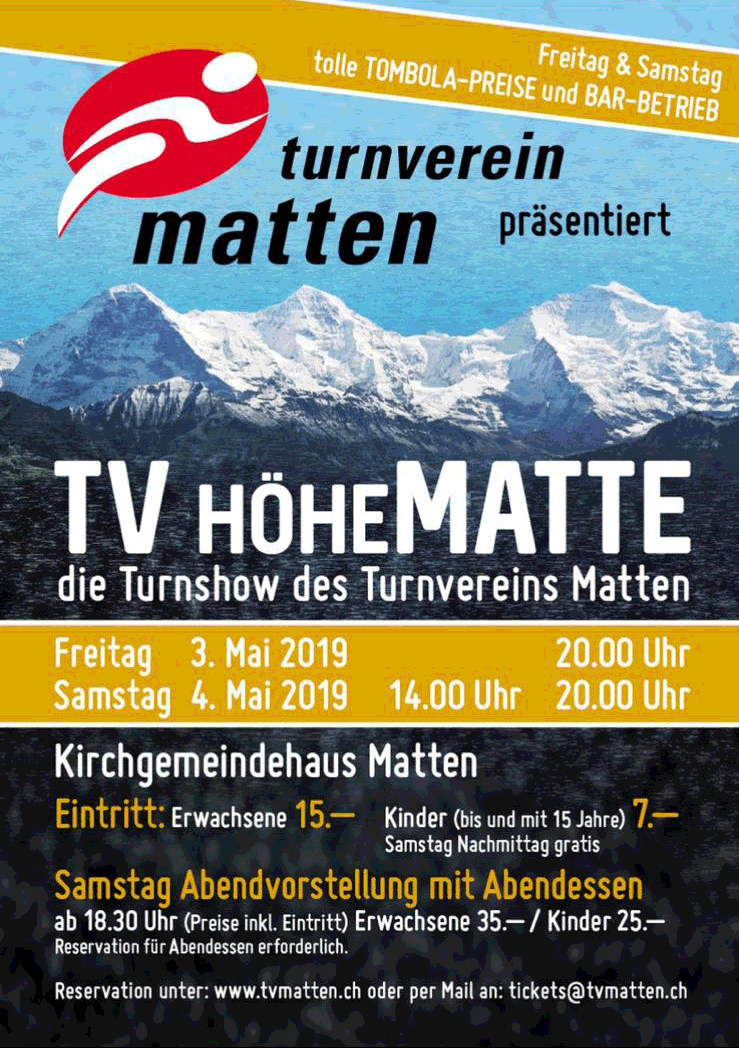 Ticketreservation Turnshow vom 3. / 4. Mai 2019