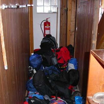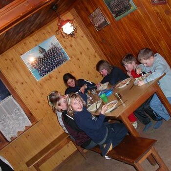 in der Hütte ein.