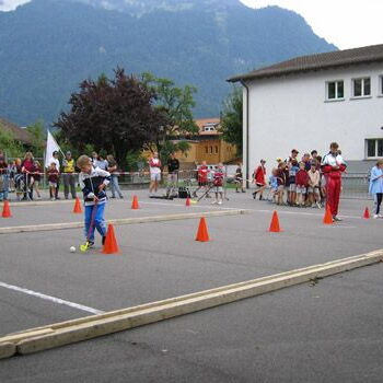 Gut gelaunt ging man dann auch in den nächsten Teil über, in dem nun drei Disziplinen durchgeführt wurden. Dies waren Unihockey- Zielschuss, Ballweitwurf und "Triff und Lauf". Die Stimmung war nach dem Einsatz unterschiedlich. Im Unihockey- Zielschuss konnte man die guten Trainingsergebnisse nicht umsetzen und einzelnen war die Enttäuschung sehr gut anzusehen. Von den Leitern und Mitjugeler motiviert bestritten die Kinder schliesslich den dritten und letzten Teil, der aus dem Hindernis-, Geländelauf sowie der Gymnastik Kleinfeld bestand. Auffallend war vor allem die Supernote 8.65 der Gymnastik, die gute Form wurde damit bestätigt.